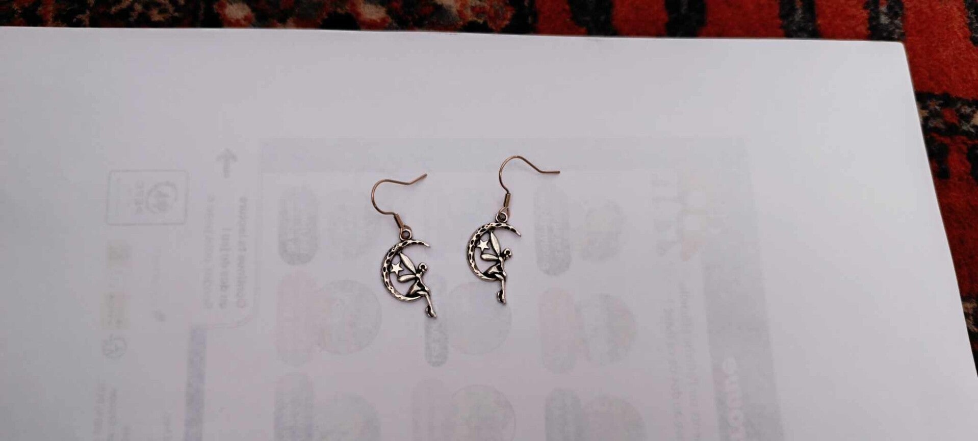 Earrings with little angels sitting on the moon .